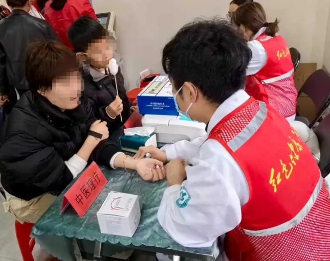 中医诊疗专区由中医科医师王之林坐诊,运用火罐、针灸、中频电治疗仪等设备,为居民提供中医抗衰、减肥调理及常见病诊疗服务。通过细致把脉问诊,制定个性化调理方案,并普及中医养生知识,其专业服务受到居民一致好评。